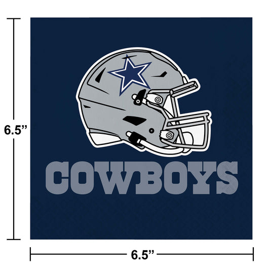 In the team colors of blue and silver, disposable Cowboys tableware has crisp white accents and images of the team name, helmet, and well-known star logo. Ideal for indoor and outdoor events, the sturdy offerings include assorted sizes of napkins and plates perfect to meet your food service needs. At tailgating events, game day viewing parties, or stocked on store shelves, show football spirit with America's Team party supplies. Bulk Dallas Cowboys decorations include flag banners, cutouts, and an attention-grabbing tablecover which can be reused at future events. Two sizes of large plastic cups offer drink service options for cold beverages in a variety of settings both indoor and out. Help customers cheer on their favorite team with officially licensed NFL tableware.
