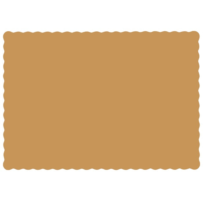 Glittering Gold Economy Placemats are a great addition at holiday time to any food establishment or special celebrations. Our Glittering Gold Economy Placemats will create that ambiance that just red and tableware alone will not. Mix and match placemats or use our extensive line of solid plates to accessorize. Made from paper, these placemats also feature beautifully scalloped edges for added detail. Measuring 9.5 inches by 13.5 inches, Glittering Gold Placemats are sold in quantities of 1000 per case