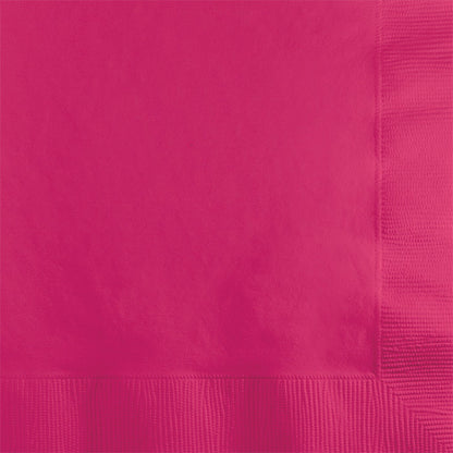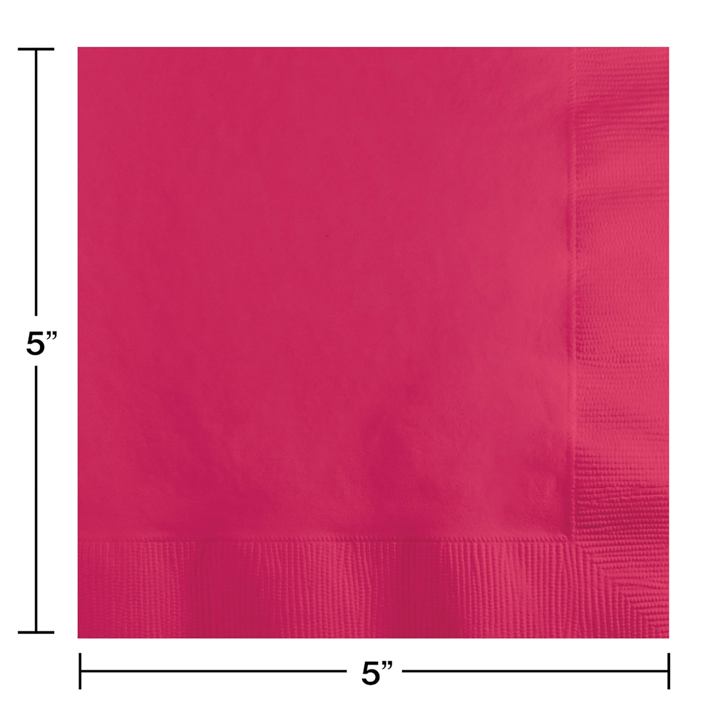 The versatile drink napkin is an essential supply for any celebration or catered event, and the Hot Magenta Beverage Napkins add superior quality and brilliant color. Each 2-ply paper napkin measures 4.938 inches x 4.938 inches and is sold 50 napkins per package. The bright pink color is perfect for multiple occasions; reunions, birthdays, weddings and more. Stack the napkins near the dessert service or drink bar, or place them next to bowls of treats and candies to be used for holding a handful of snacks. There is always a use for these napkins! The Hot Magenta Beverage Napkins are packaged in quantities of 50 each with 12 packages per case.