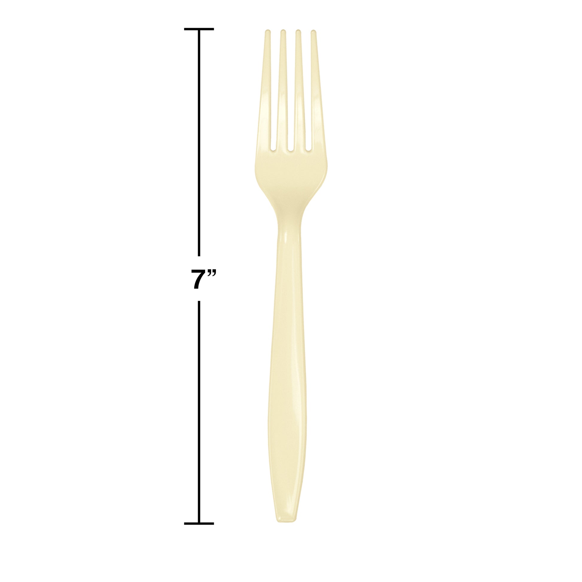 Celebrate in style with our wholesale Ivory Plastic Forks. These heavy duty plastic forks will add style to any buffet or table setting. Our elegant ivory forks look extra eye-catching when combined with our matching ivory cutlery or other ivory tableware in bulk quantities. In addition to their excellent quality and design, our wholesale disposable cutlery is competitively priced to offer significant savings for event planners, caterers, restauranteurs, and party hosts who need budget-friendly ivory cutlery.