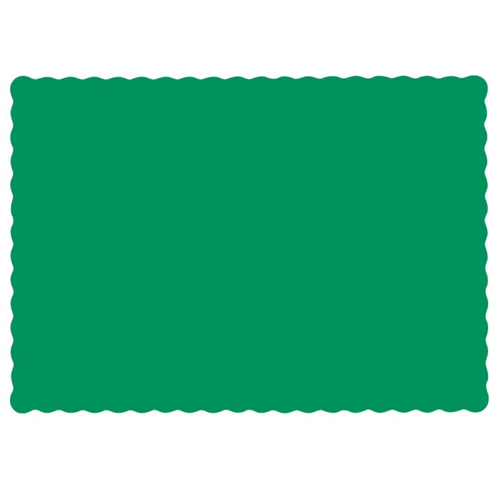 Jade Economy Placemats are made from 100% recycled paper. The jade green placemat is very stylish and elegant with scalloped edges, and can be used in virtually any setting from a formal wedding to an informal outdoor event. Jade Economy Placemats will bring a pop of color to your tables when used for daily use as well. Measuring 9.5 inches by 13.5 Inches, Jade Placemats are sold in quantities of 1000 per case.