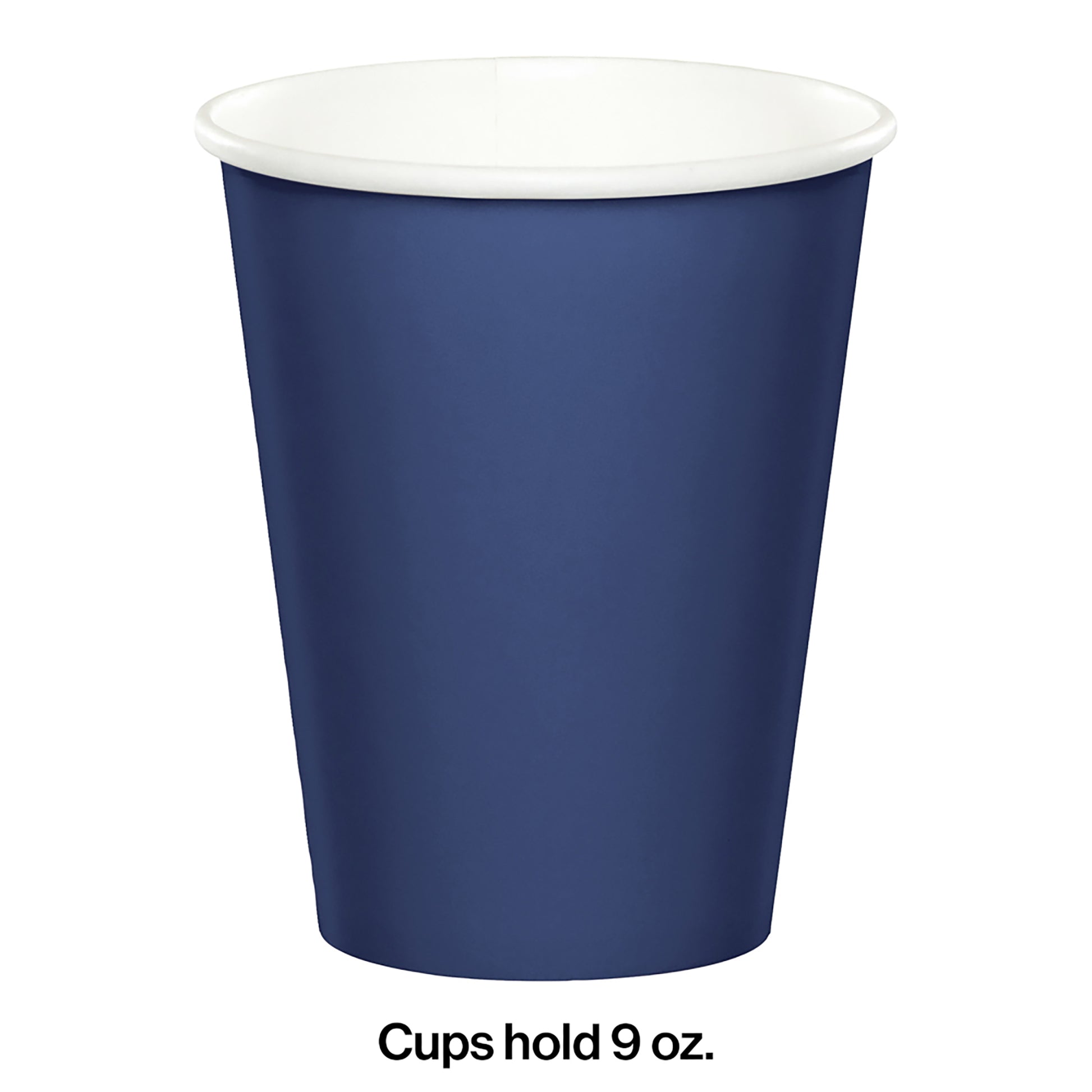 To add bold accents and style to your catered event or gathering just set out the Navy Hot & Cold Cups. Every package contains 24 sturdy paper cups in navy that each hold 9 ounces of hot or cold beverages. Place these cups next to the punch bowl or coffee dispenser, or put one at each place setting for guests to use. The blue color is perfect for receptions, showers or reunions and the color coordinates with numerous theme ensembles. The Navy Hot & Cold Cups are packaged in quantities of 24 each with 10 packages per case.