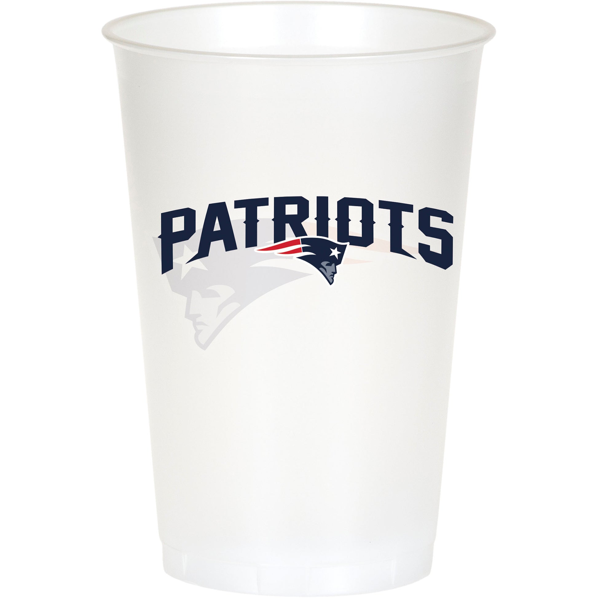 Add the perfect accent to any bar or tailgating event with these wholesale offerings! The bulk New England Patriots 20 Ounce Plastic Cups are designed to fit in with any football themed event or game watching party featuring the team colors and logos. The clear cups are constructed with #6 recyclable plastic and are printed with the red, white, and blue patriot head logo on one side and the team name on the other. Serve cold beverages or snacks in the festive cups for the ultimate fan experience. Cups are packaged in quantities of 8 with 12 packages per case.