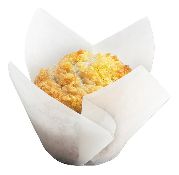 Make a stunning statement at weddings, inside candy shops, pastry counters, coffee shops and more when you display bakery masterpieces and candy confections inside our Hoffmaster White Tulip Cups. The small 3-4 ounce baking cup is constructed from a 6 inch square of high quality greaseproof paper that is pre-formed into a 2 inch x 2 inch x 3.5 inch baking cup with 4 pointed peaks. Each tulip shaped wrapper is designed to withstand an oven temperature of 425° F. Patrons and guests will take delight in peeling down their tulip cup wrapper to reveal a deliciously sweet treat tucked inside. Tulip cups are sold in bulk 2,500 count packages that feature 4 packages of 250 liners.