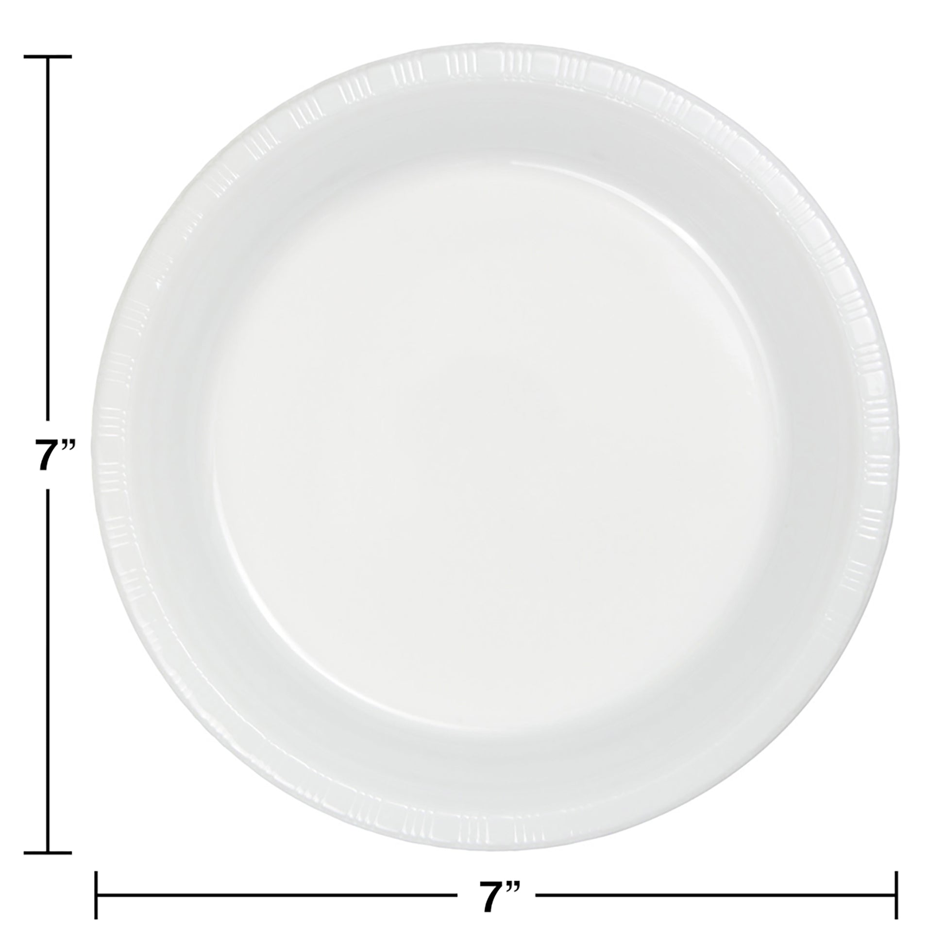 Event planners, caterers, and brides on a budget will love the functionality of our White Dessert Plates while adding a clean and polished look to the special event. The 7 inch round plastic plates are a perfect alternative to pricier tableware rentals with no cleaning necessary and no worries over damage or loss. The plastic plates contain a slightly flexible center with a rigid outer edge and can be recycled (#6) or disposed of at the end of the celebration. Plastic dessert plates are designed for single use only and are not intended for microwave or dishwasher use. White Dessert Plates contain 20 per package with a case quantity of 12 packages.