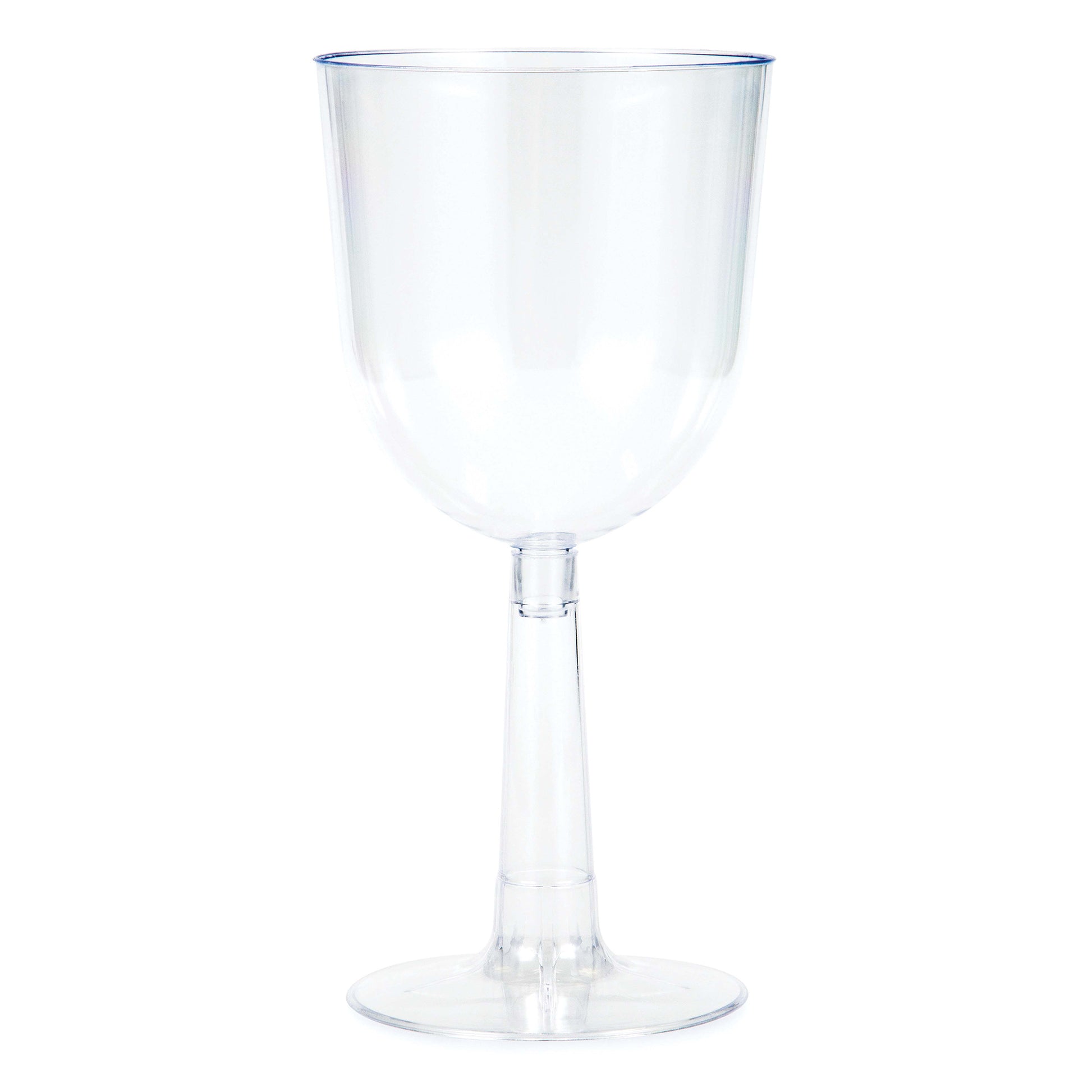 Serve everything from pinot grigio to pinot noir at your event or restaurant with help from our wholesale 12 oz Plastic Wine Glasses 48 ct. These bulk, 12-ounce plastic wine glasses are made from sturdy plastic. They feature an easy-to-assemble, two-piece construction that makes storage a breeze. Without the hassle of washing glasses or worries over broken glass, these will add convenience to your business or event. Sold in bulk quantities of 48 cups per case, grab these today!