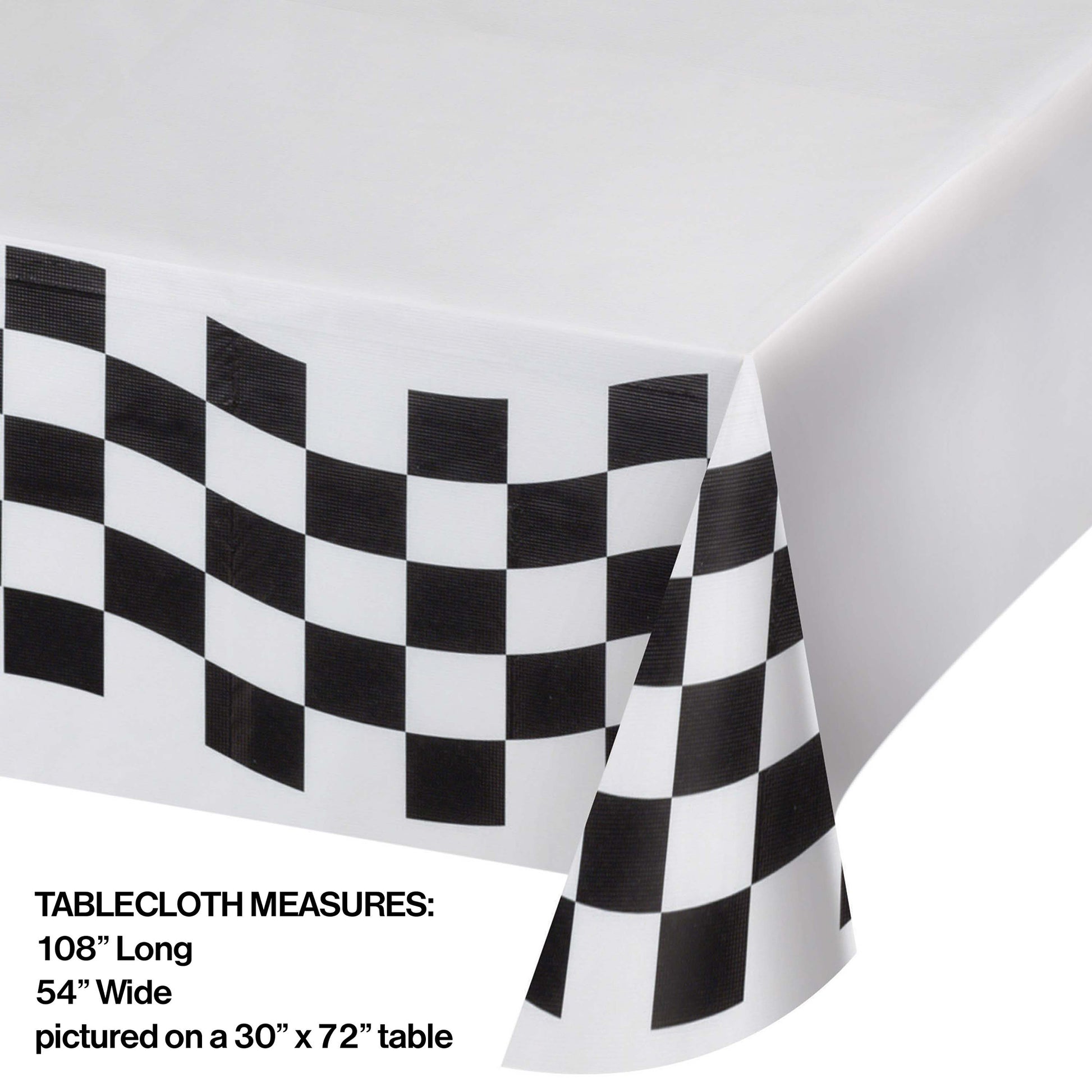 Get your party started with the Black and White Check Paper Tablecloth. Any race filled afternoon needs this checkered pattern covered table cover to keep the party clean and comfortable! Be sure to include this with our other Black and White party supplies. With wholesale pricing and bulk quantities, our Black and White Check Paper Tablecloths 12 ct are perfect for event planners, caterers, and home hostesses alike.
