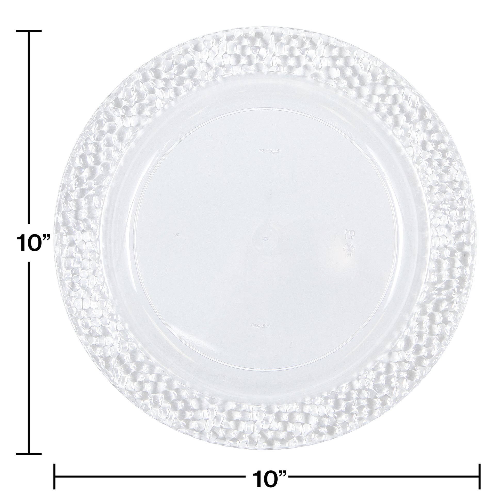 Create a modern flair when you entertain with the Clear Pebble Plastic Plates. These sturdy plastic plates measure 10" and feature a pebbled texture and a clear theme. Sold in packs of 120, these disposable plastic plates coordinate with all Clear Pebble party supplies. With wholesale pricing and bulk quantities, our Clear Pebble Plastic Banquet Plates 120 ct are perfect for event planners, caterers, and home hostesses alike.